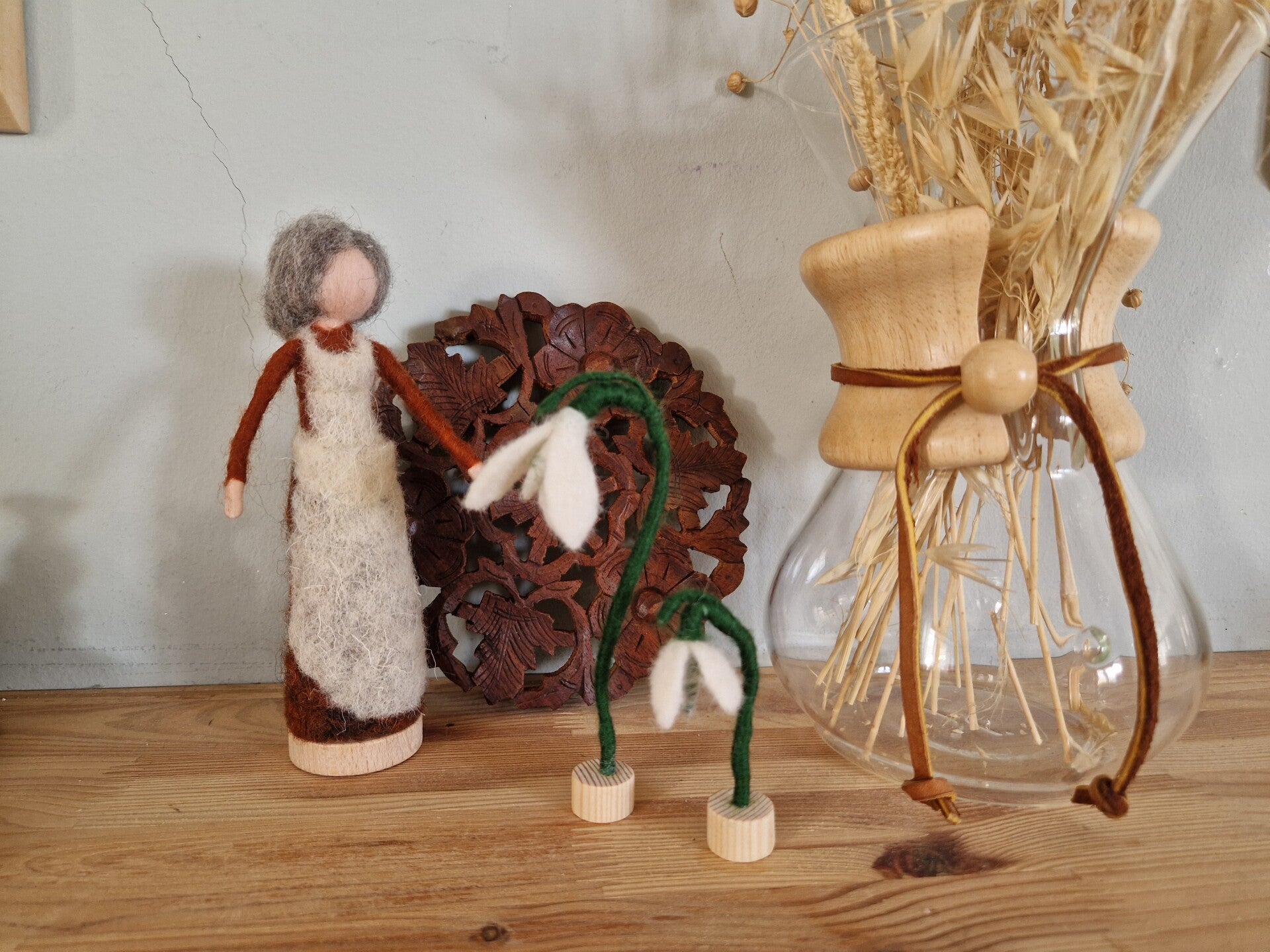 Schattig sneeuwklokje jaarringsteker van wolvilt