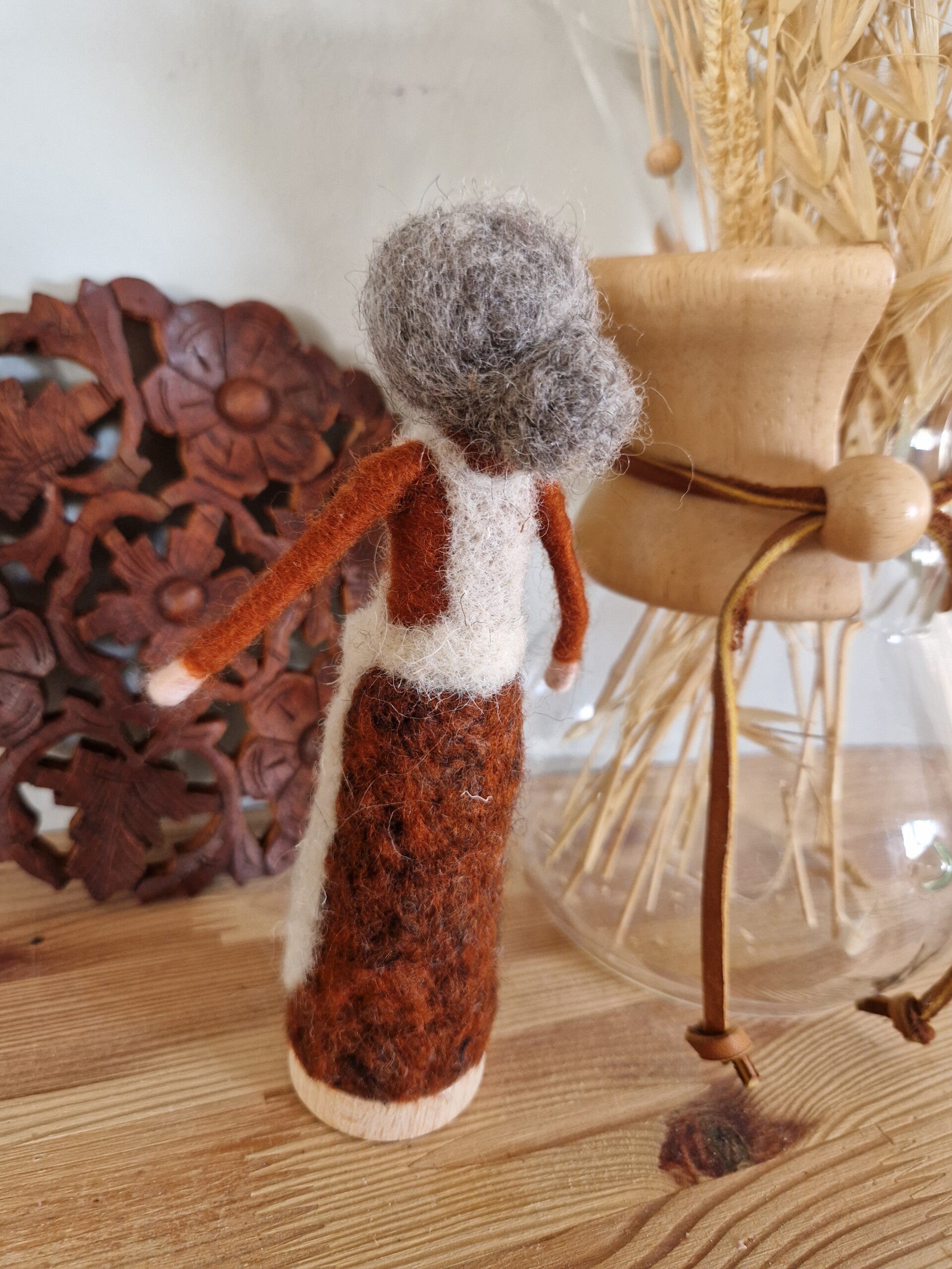 Ze staat op een houten voetje, waardoor ze goed stevig staat!